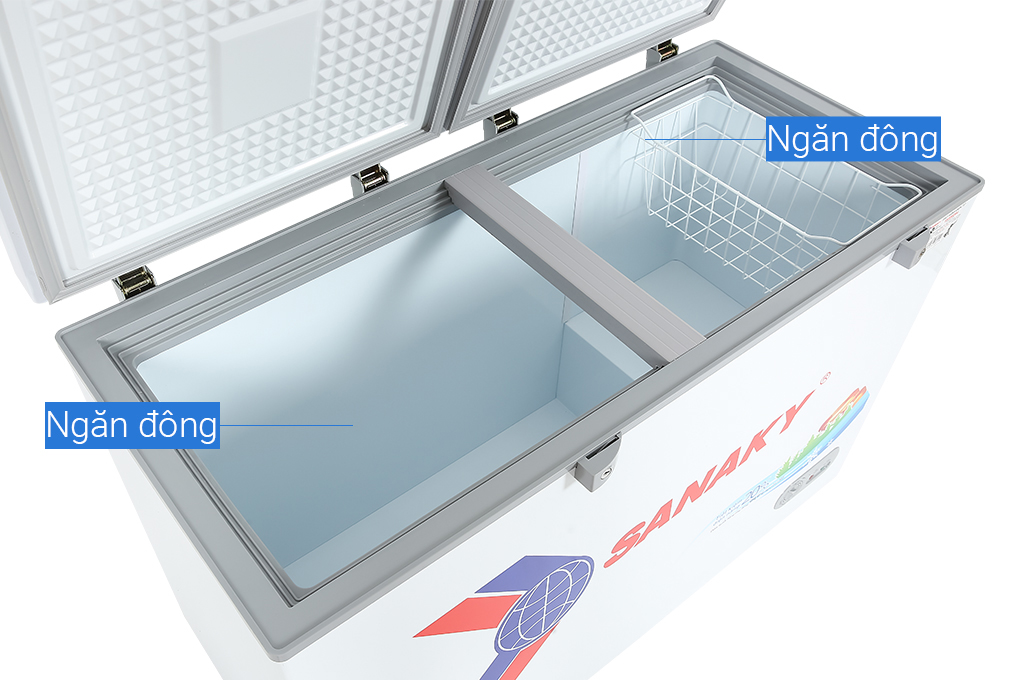 Tủ đông Sanaky VH-5699W3 với thiết kế 2 ngăn chứa tiện lợi, đáp ứng linh hoạt nhu cầu bảo quản nhiều loại thực phẩm khác nhau. Mẫu tủ đông này gây ấn tượng với khả năng