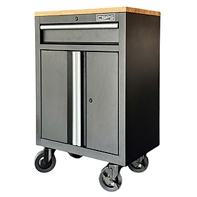 Tủ dụng cụ CSPS 61cm - 01 hộc kéo màu đen bánh xe ván gỗ (tay cầm trắng)