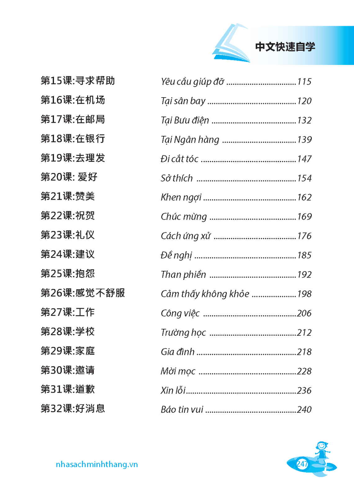 Cuốn sách “Tự học tiếng Trung cấp tốc” dành cho những đối tượng mới tiếp xúc với tiếng Trung. Cuốn sách bao gồm 32 bài ứng với 32 chủ đề giao tiếp quen thuộc gắn