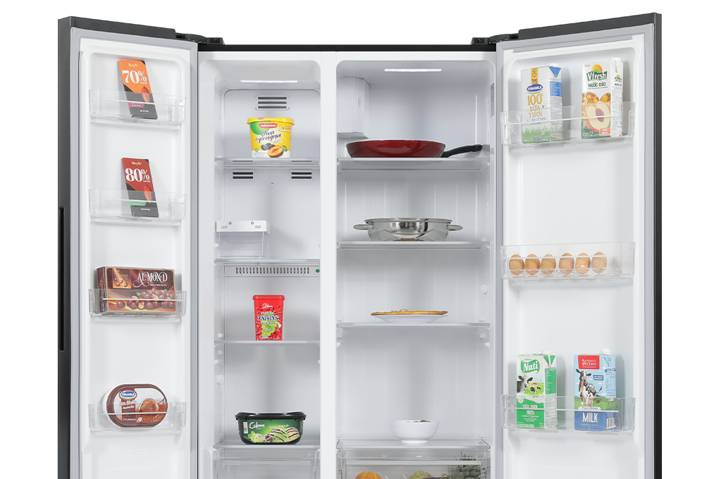 THÔNG TIN SẢN PHẨM - Kiểu tủ:Tủ lớn - Side by Side - 2 cánh - Dung tích sử dụng:519 lít - 4 - 5 người - Dung tích tổng:Hãng không công bố - Dung tích ngăn đá:185 lít - Dung tích ngăn lạnh:334 lít - Chất liệu cửa tủ lạnh:Mặt gương mờ - Chất liệu khay ngăn lạnh:Kính cường lực - Chất liệu ống dẫn gas, dàn lạnh:Ống dẫn gas bằng Đồng - Lá tản nhiệt bằng Nhôm - Năm ra mắt:2023 - Sản xuất tại:Trung Quốc Mức tiêu thụ điện năng - Công suất tiêu thụ công bố theo TCVN:520 kWh/năm - Công nghệ tiết kiệm điện:Inverter Công nghệ bảo quản và làm lạnh - Công nghệ làm lạnh:Luồng khí lạnh đa chiều Multi Air FlowCông nghệ 2 dàn lạnh độc lậpCông nghệ làm lạnh No Frost - Công nghệ bảo quản thực phẩm:Ngăn Moisture Fresh Crisper cân bằng độ ẩm - Công nghệ kháng khuẩn, khử mùi:Bộ lọc Anti Bacteria·Purify diệt khuẩn, khử mùi Tiện ích -