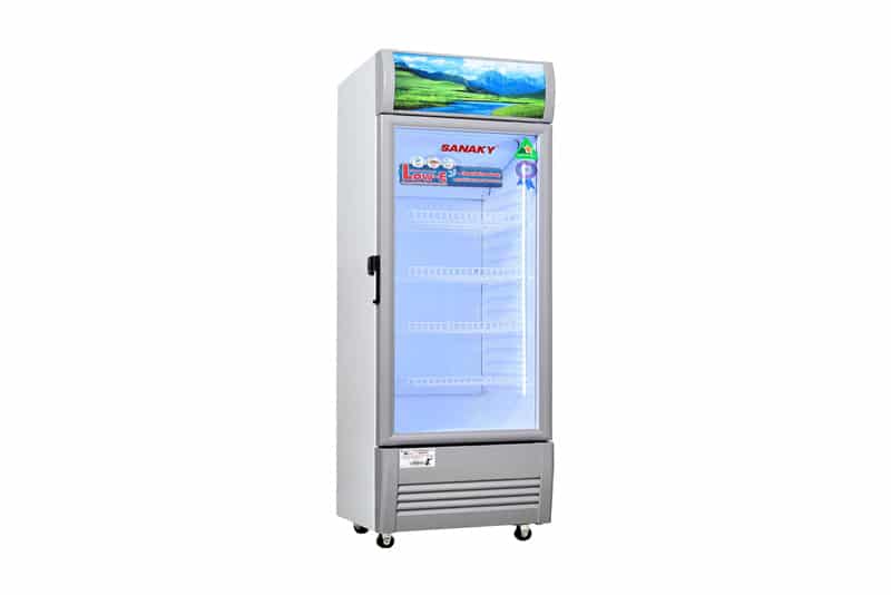 TỦ MÁT SANAKY 130 LÍT VH-168KL NHÔM (R600A) Tủ Mát Sanaky VH-168KL là loại tủ mát thiết kế dạng tủ đứng, 1 cánh kính mở, dung tích tối đa là 130 lít, phù hợp với các tiệm tạp hóa, quán nước gia đình hay siêu thị mini với nhu cầu bảo quản và trưng bày ít. Đặc điểm nổi bật của tủ mát Sanaky VH-168KL – Kích thước tủ nhỏ gọn, phù hợp cho không gian nhỏ, vừa có thể bảo quản vừa trưng bày sản phẩm, hàng hóa. – Kính hai lớp chịu lực. Hệ thống sưởi kính hiện đại. Lớp thành tủ dày giữ nhiệt tốt. – Kệ để sản phẩm có thể di chuyển vị trí. – Dàn lạnh ống nhôm cho hiệu xuất dẫn khí tốt và làm mát nhanh. – Quạt lồng sóc làm lạnh nhanh, sâu. – Block máy nén do Panasonic sản xuất hoạt động rất êm ái và bền bỉ, tuổi thọ cao. – Đèn chiếu sáng dọc bên hông tủ. – Sử dụng công nghệ đèn led tiết kiệm điện. – Sử dụng gas R600a thân thiện với môi trường.