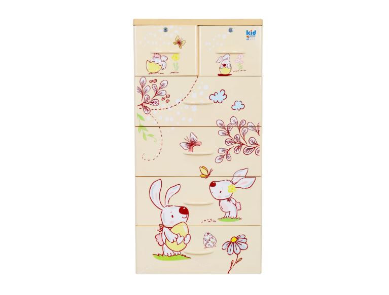 ✨Tủ nhựa 5 tầng Qui Phúc KID màu hột gà mẫu Con Thỏ KT 600 x 470 x 1300 mm _ Juno Sofa hàng lắp sẵn