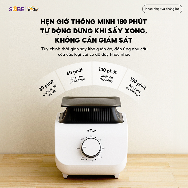 Sấy nhanh, Diệt khuẩn và mạt. Hai chế độ làm nóng PTC và gió nóng tuần hoàn 360° Thiết kế nhỏ, thuận lợi nhưng hiệu suất sấy cao. Có đèn UV để diệt khuẩn đạt