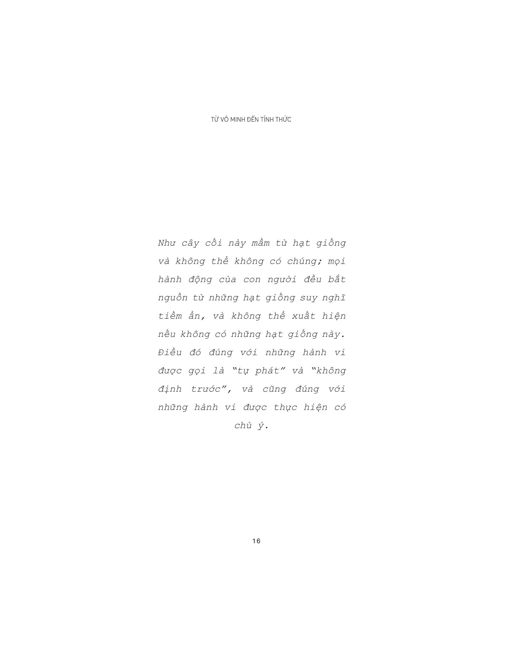 Từ Vô Minh Đến Tỉnh Thức “Mỗi hạt giống suy nghĩ được gieo vào tâm trí và bén rễ ở đó sẽ tự sinh trưởng và nở hoa thành hành động, rồi tạo nên những cơ hội và hoàn cảnh cụ thể. Ý nghĩ tốt là...