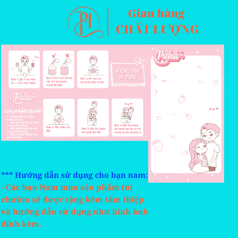 - Không được cho nước sôi trực tiếp vào túi chườm. *** Cách vệ sinh: