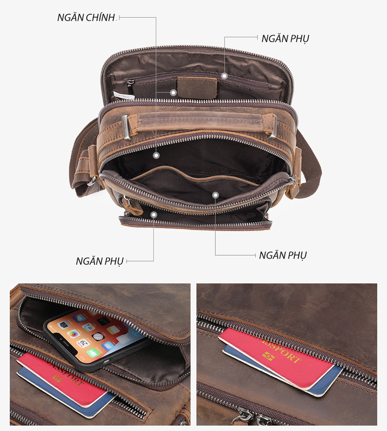 Túi chéo nam da bò nhỏ gọn nhiều ngăn chia đồ tiện đeo hằng ngày #vuadasaigon #tuinamdathat