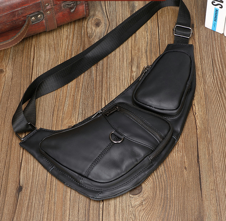 Túi đeo ngực, đeo chéo nam da bò cao cấp BHM9104 được thiết kế khá đơn giản kết hợp với màu đen trơn mang lại sự giản dị cũng không kém phần trẻ trung, năng