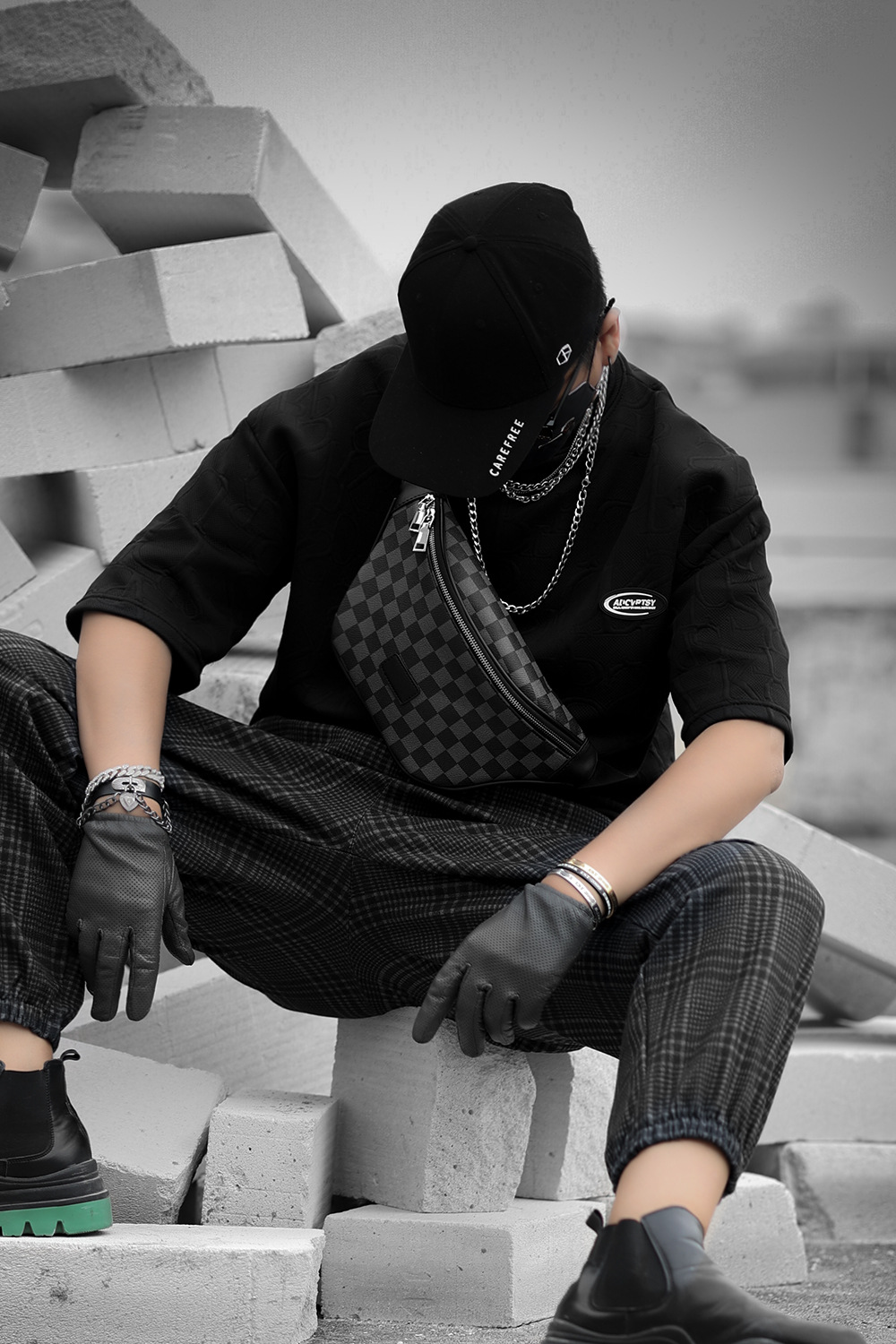 Màu sắc: Đen phối xám ca rô