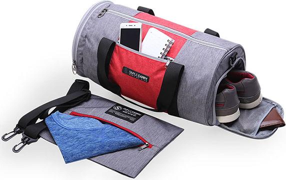 Túi gồm 1 ngăn chính lớn, 1 ngăn bên trái có ngăn đựng điện thoại, vật dụng nhỏ và 1 bên phải là ngăn đựng giày, hoặc áo mưa.
