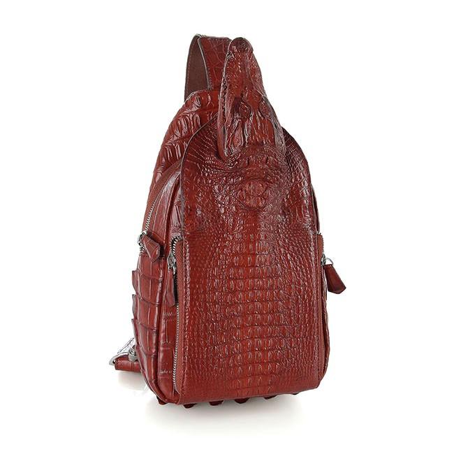 ✨Túi đeo trước nam da cá sấu Huy Hoàng đầu cá sấu màu nâu đỏ HC6292