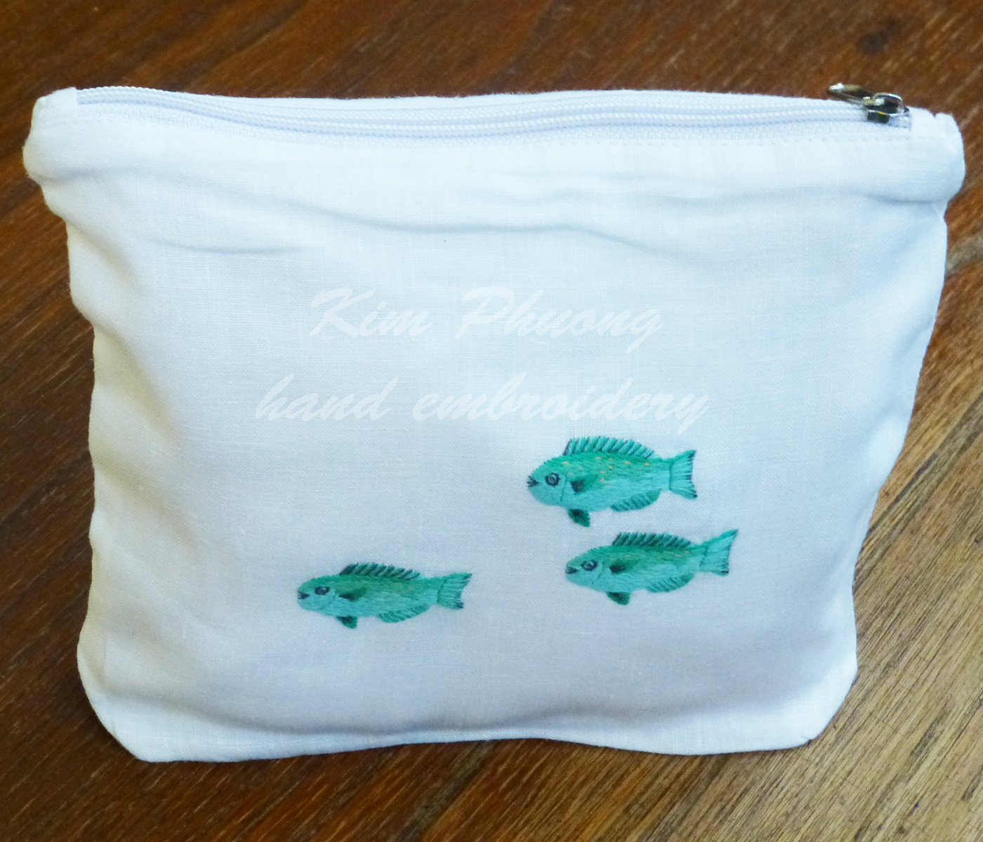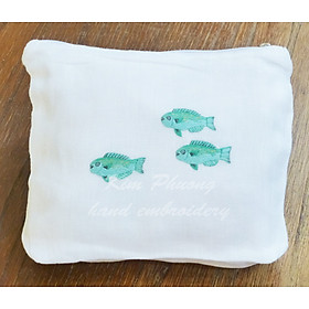 ✨Túi mỹ phẩm thêu tay - 3 cá két xanh lá