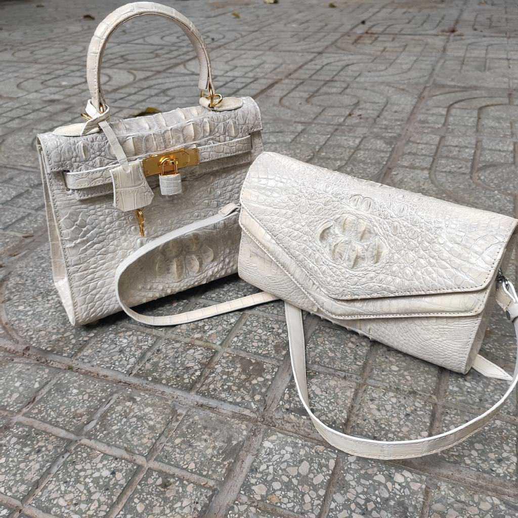 Túi xách da cá sấu bạch tạng màu trắng hymalia #tuidacasaubachtang #tudacasau