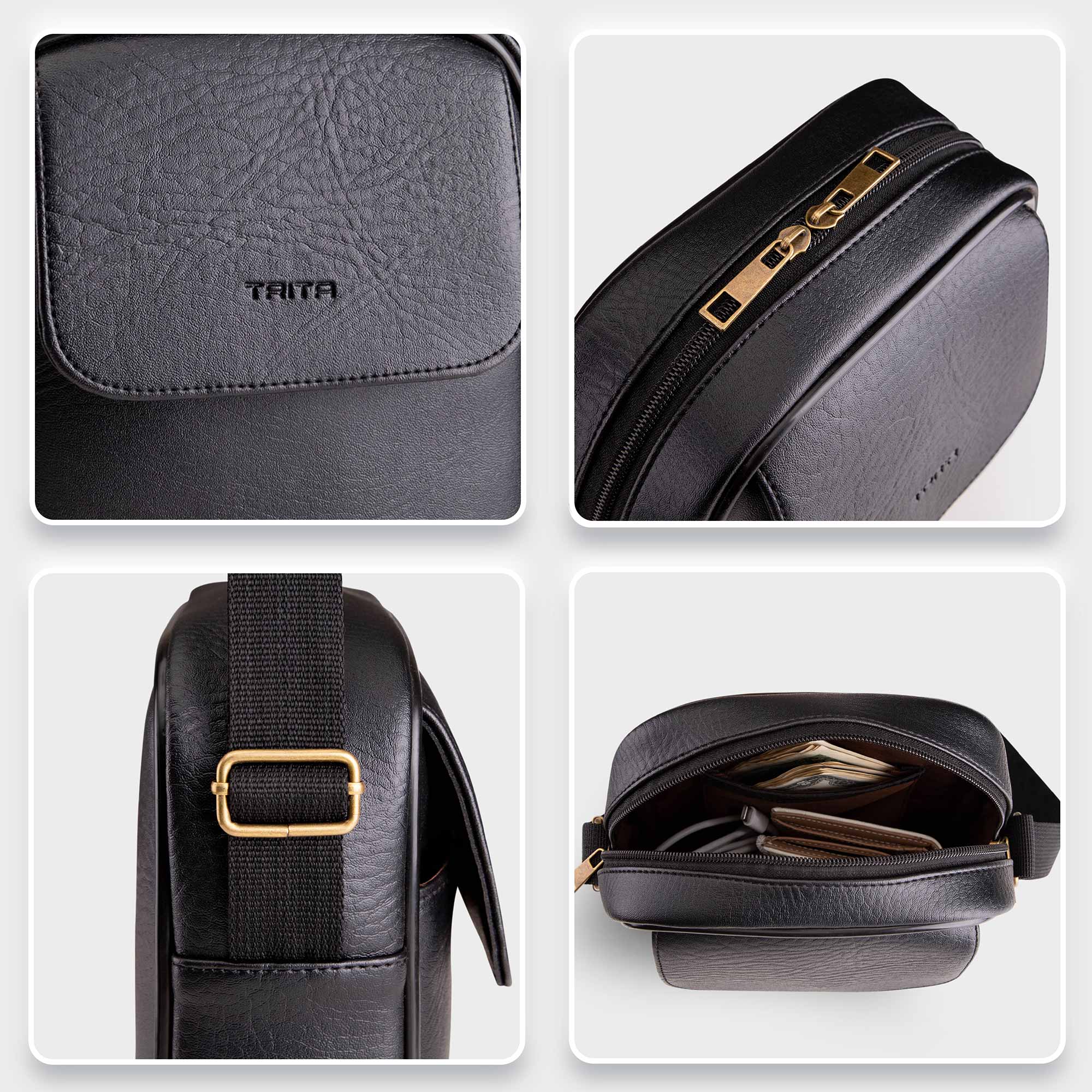 Túi đeo chéo nam ngang nhỏ gọn cao cấp BHM2030 Khá tiện dụng với thiết kế hình hộp chữ nhật gọn gàng cùng màu đen đơn giản dễ dàng kết hợp mọi phong cách thời