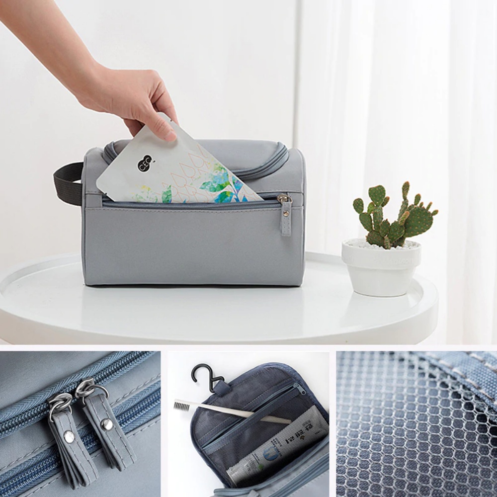 Túi với thiết kế một ngăn lưu trữ lớn giúp bạn có thể mang nhiều vật dụng cá nhân như khăn mặt, mỹ phẩm, dầu gội, Ngăn nhỏ bên trong túi có lớp vải lưới,bạn có thể để bàn chải đánh răng, kem đánh răng, và ngăn nhỏ bên ngoài túi có thể để điện thoại, sổ sách hay các vật linh tinh như chìa khóa, kẹo,
