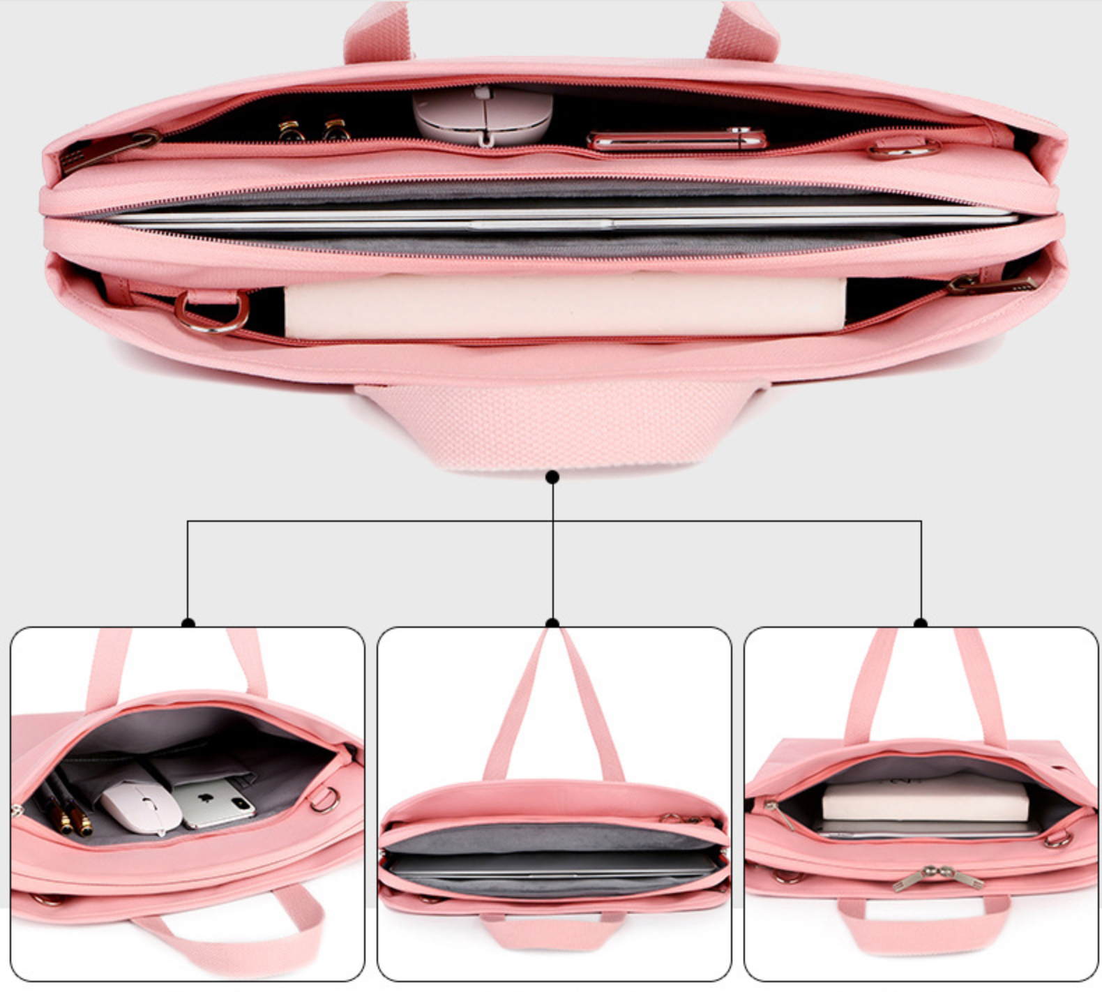 ✨Túi xách chống sốc cho máy tính, macbook, laptop chống nước, siêu nhiều ngăn màu tím - HỒNG - 14 INCH