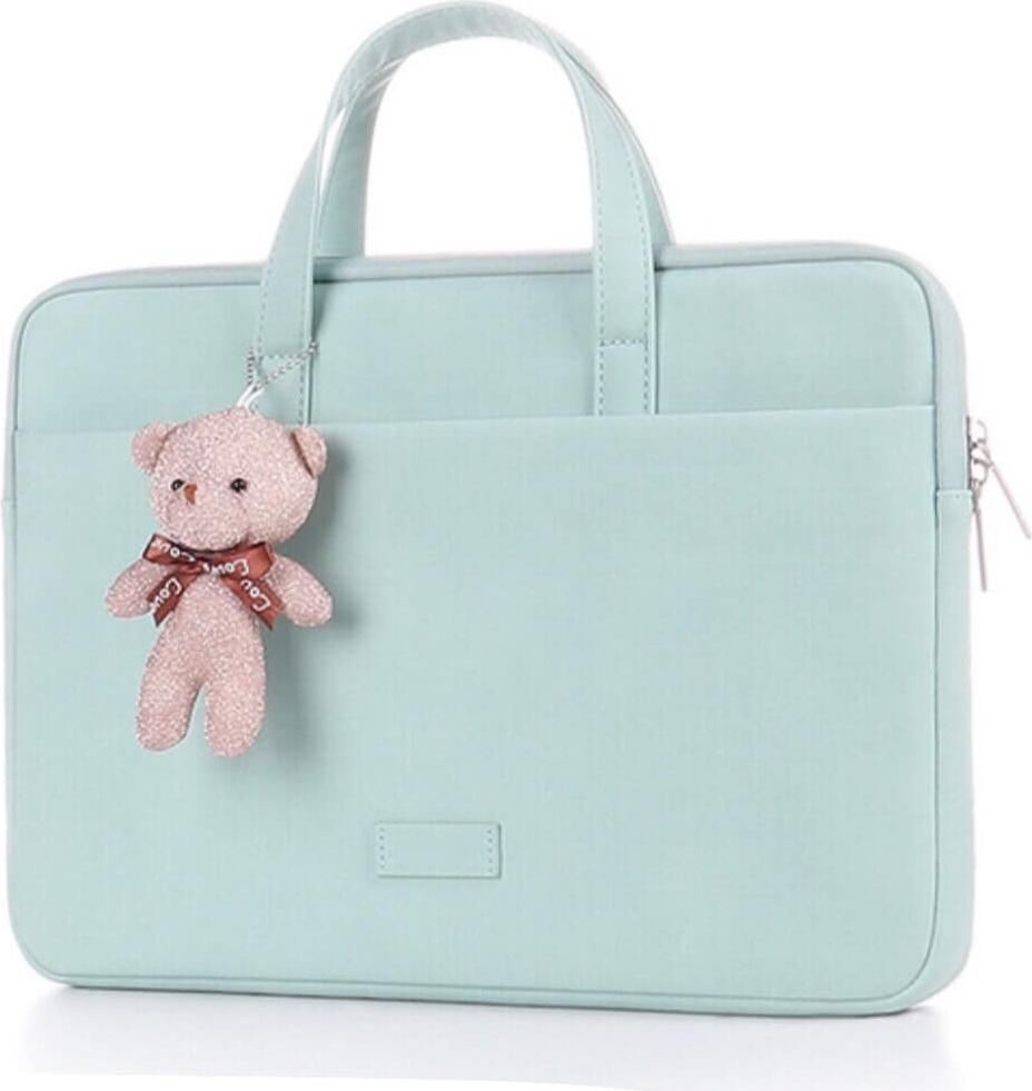 ✨TÚI XÁCH DA CHỐNG SỐC, CẶP DA ĐỰNG LAPTOP, MACBOOK, MÁY TÍNH MÀU XANH NGỌC KÈM GẤU BÔNG CUTE