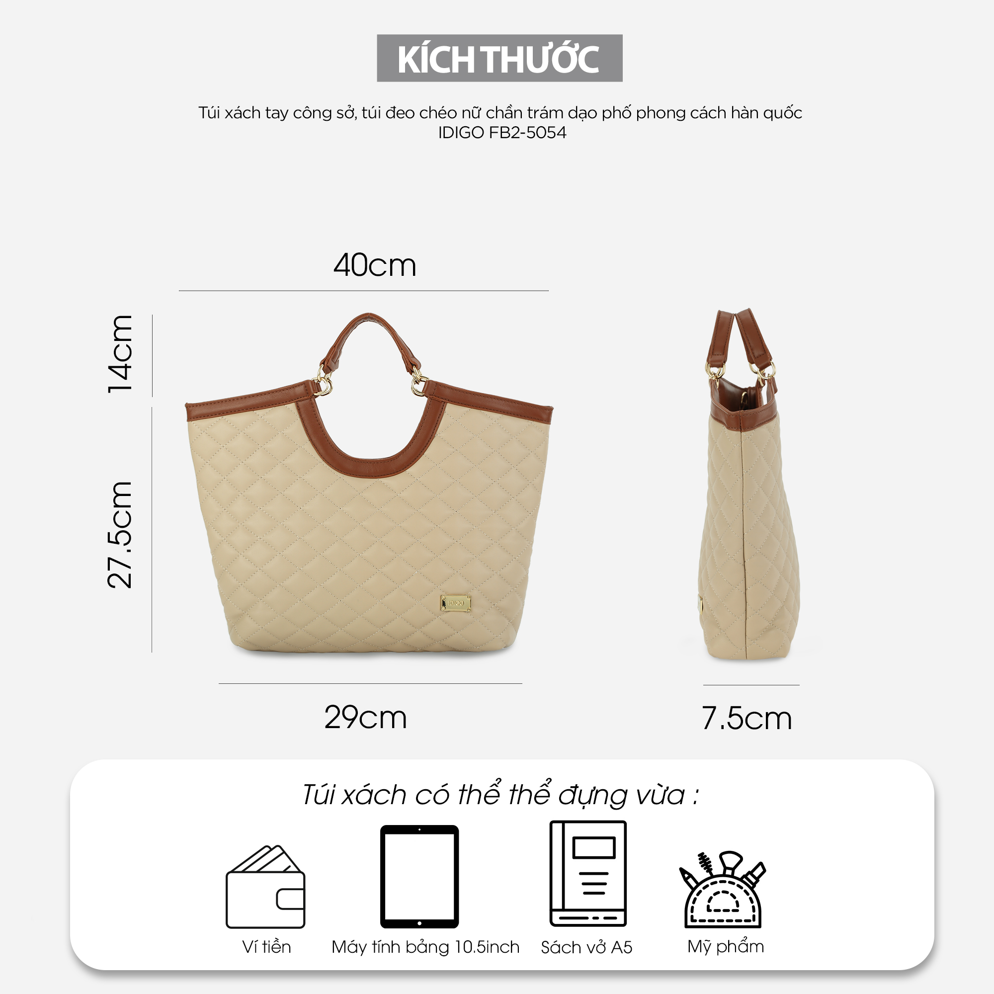 ✨Túi xách nữ công sở đựng tài liệu A5 IDIGO FB2 - 5054, túi đeo chéo nữ chần trám dạo phố phong cách Hàn Quốc