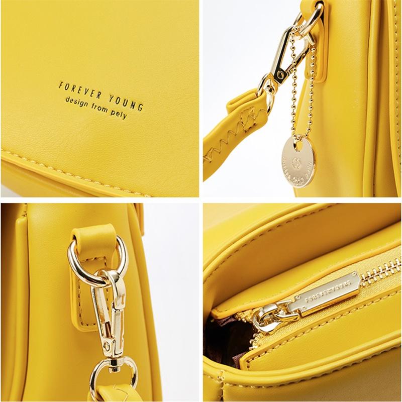 Đường may tỉ mỉ, tinh tế, túi đeo cheo nữ có khóa kéo mượt mà, chắc chắn, in khắc logo sang trọng, độ bền cao trong quá trình sử dụng.