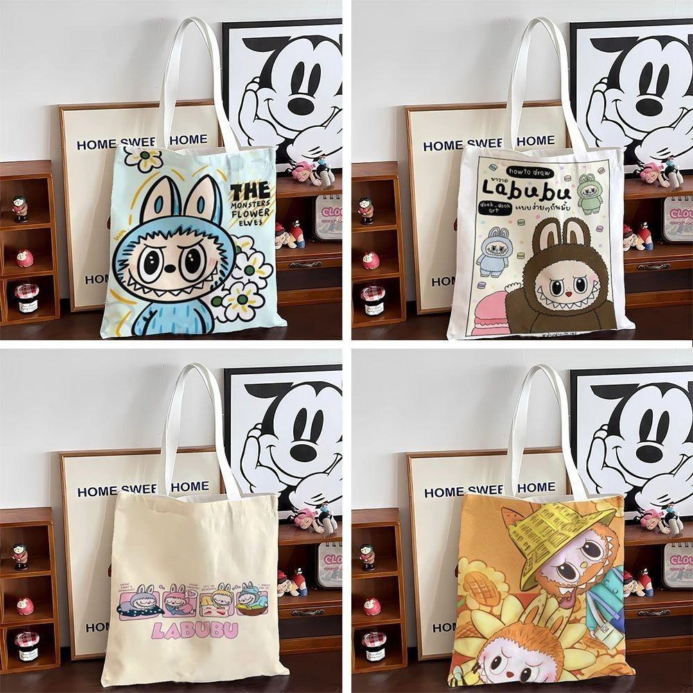 Túi xách Labubu Túi vải của phụ nữ Labubu Túi đeo chéo Túi đeo vai Túi Tote vải Labubu Phim hoạt hình Dung tích lớn Đơn giản Thời trang thường ngày