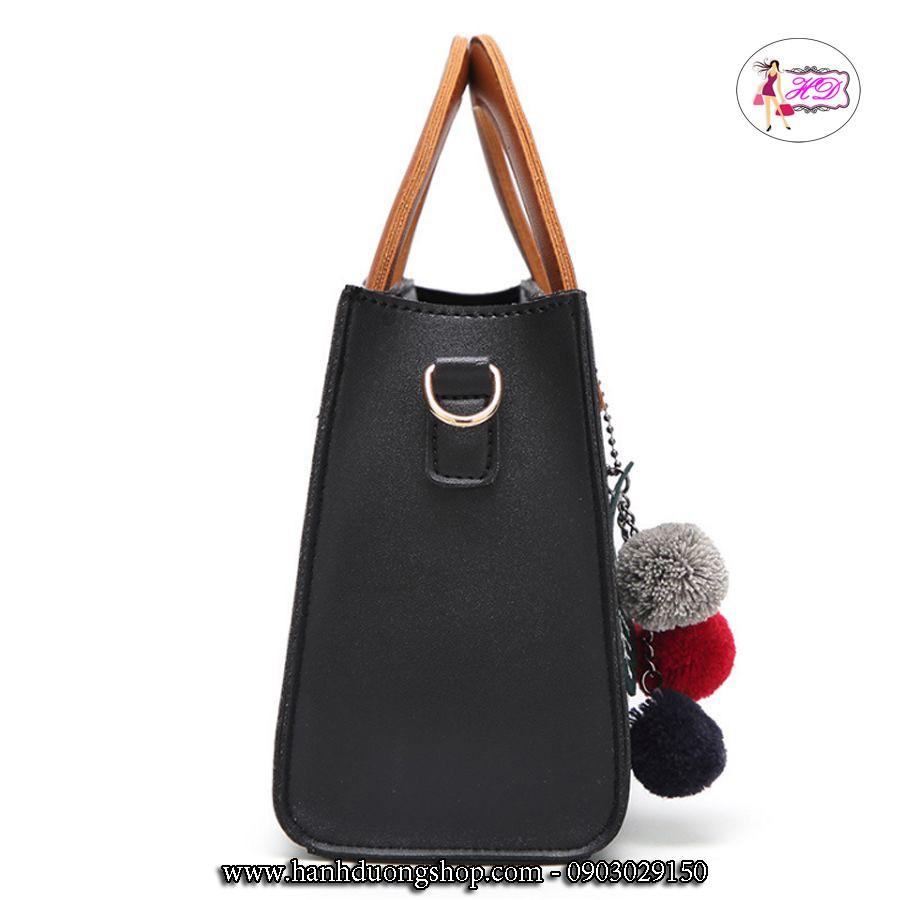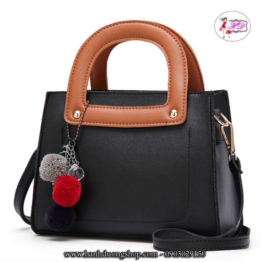 Túi xách thời trang vuông giản dị, gắn chùm phụ kiện dễ thương, chất liệu da cao cấp, có dây đeo chéo tiện dụng - Hạnh Dương