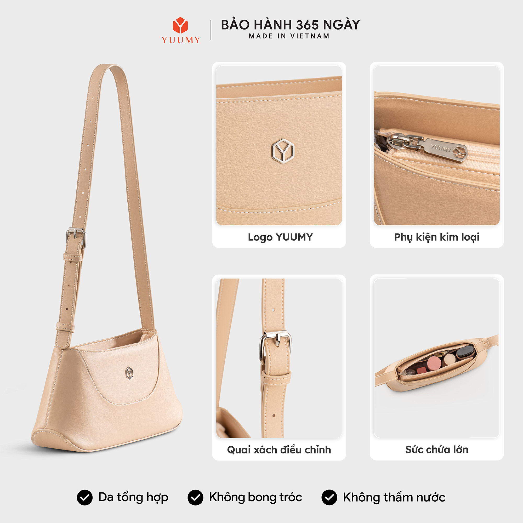 Túi xách vai Yuumy YTX76 với thiết kế dáng vòm mềm mại, form đứng vững vàng cùng gam màu dịu nhẹ, chiếc túi này dễ dàng đồng hành cùng bạn trong nhiều hoàn cảnh –