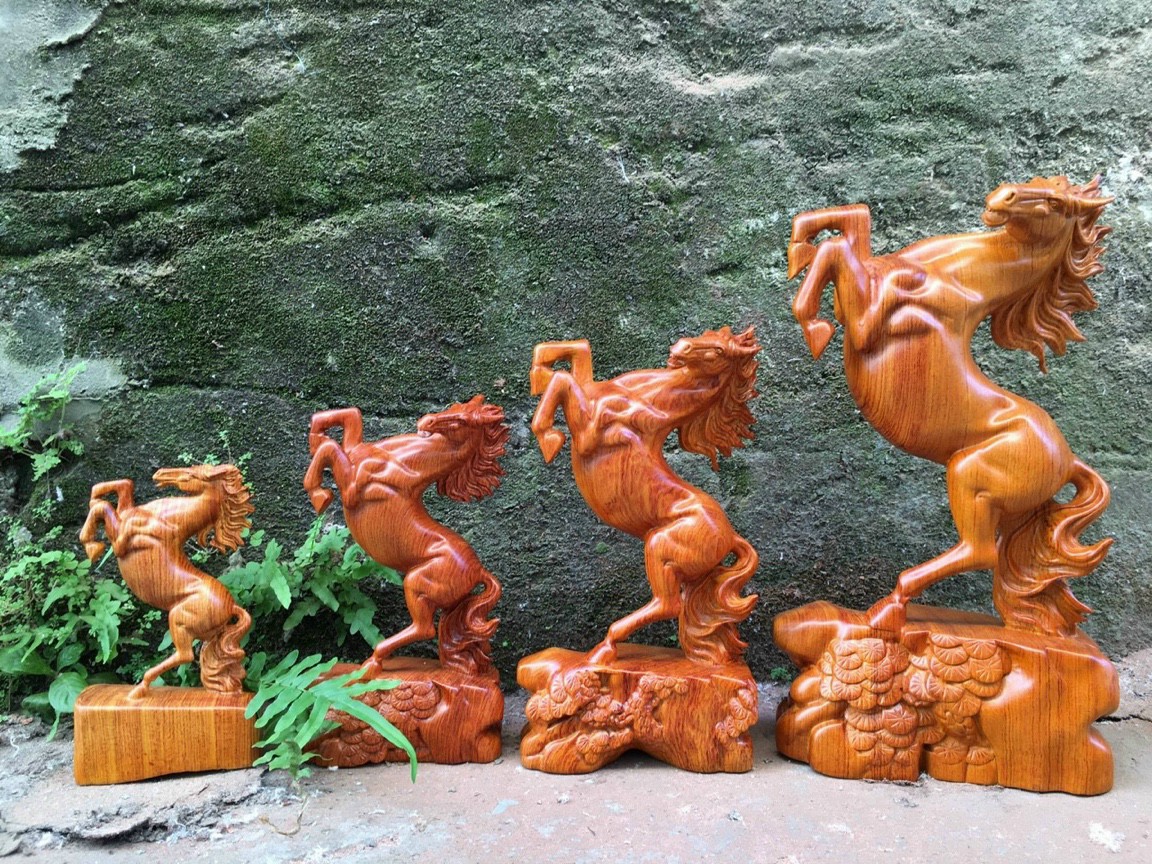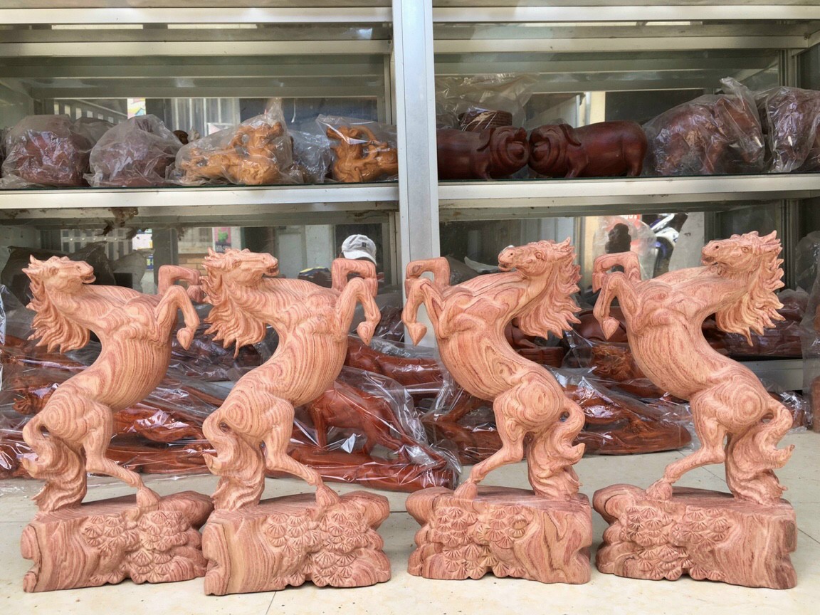 ✨Tượng con ngựa tượng phong thủy gỗ hương kt cao 40×22×10cm
