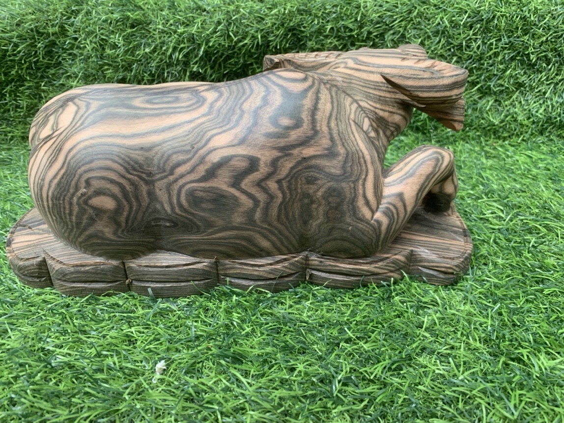 Tượng trâu tài lộc phong thủy gỗ Mun hoa Lào
