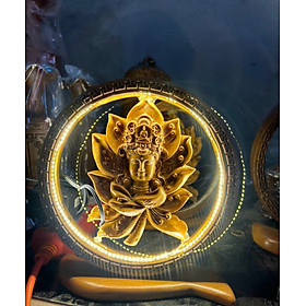 _Diện phật được làm bằng chất liệu gỗ hương đá tự nhiên 100% _ Kt tròn 20×20×6cm _ Diện phật được trạm khắc tỉa mỉ ,tinh sảo kỳ công à được lắp thêm bóng đèn