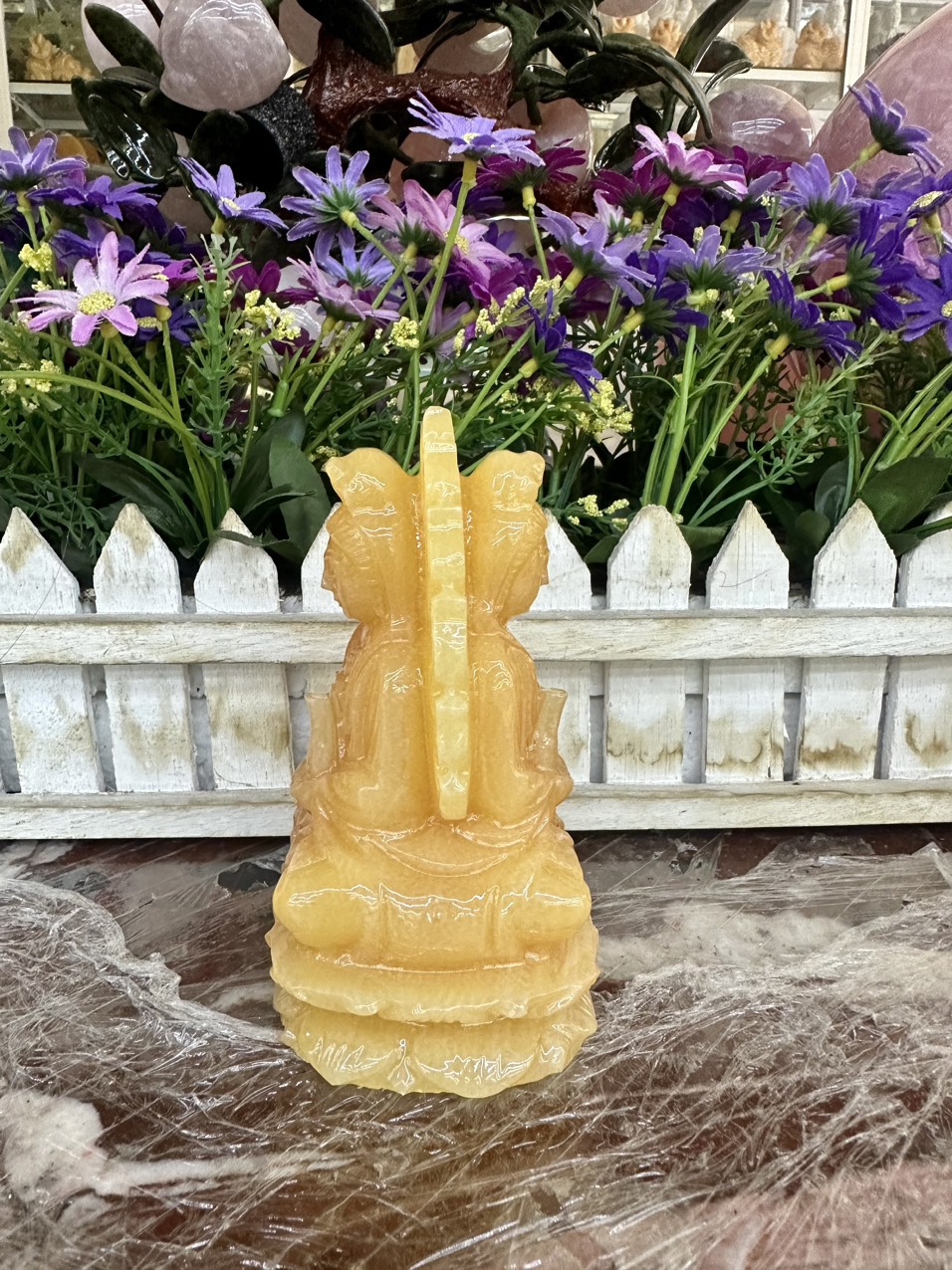 Tượng Phật Bà Quan Âm 2 Mặt đá lưu ly vàng đậm đẹp ĐỂ TRONG XE HƠI hoặc BÀN cao 10cm đk 6cm mệnh KIM mệnh THỔ và THỦY ạ --- Tượng phật bà quan