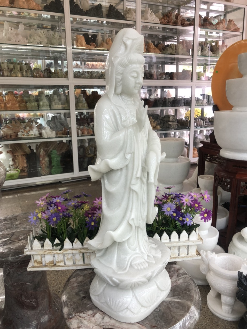 ✨Tượng Phật Bà Quan Thế Âm Bồ Tát đứng đài sen đá cẩm thạch trắng - Cao 60 cm