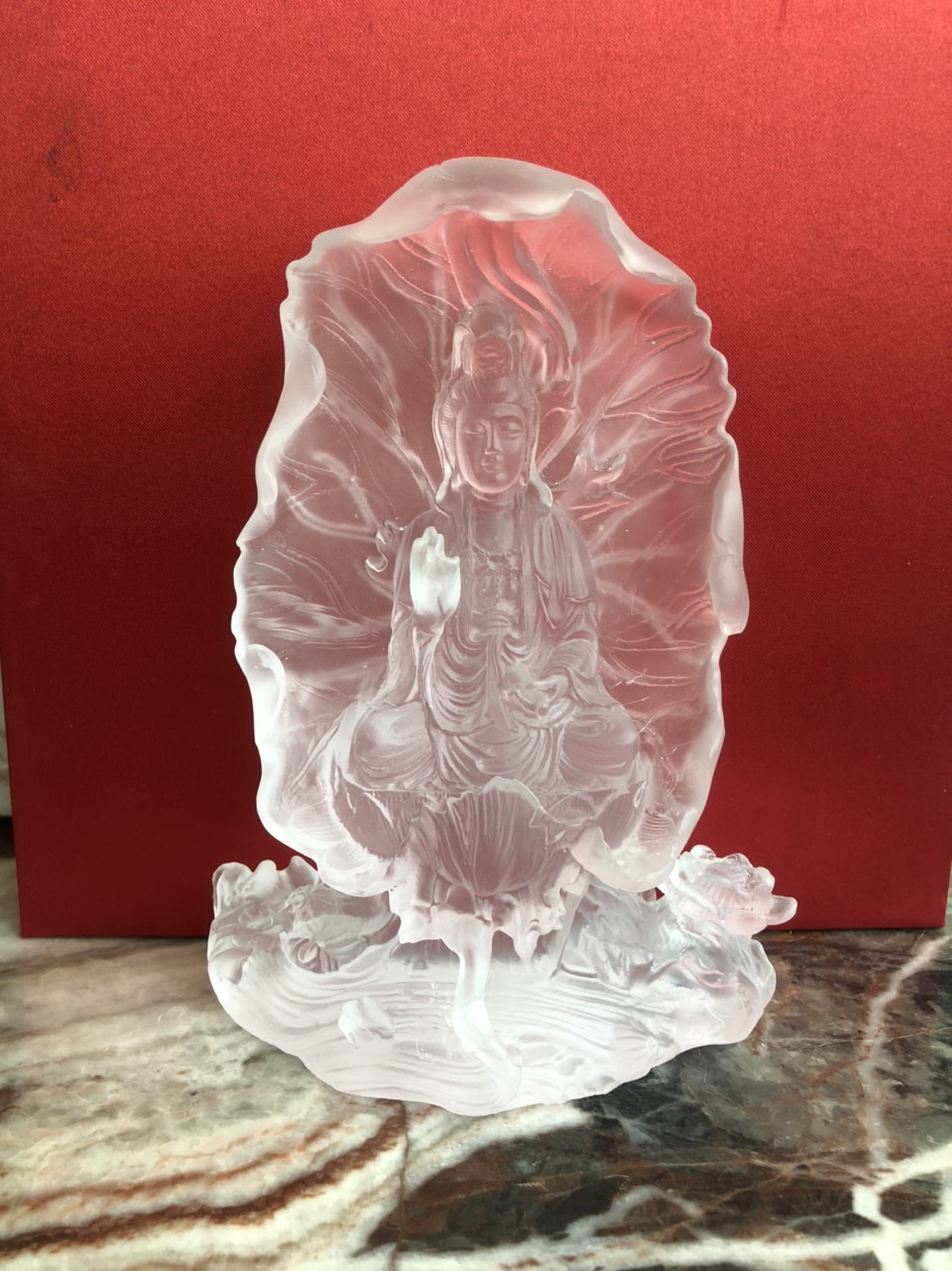 Phật Mẹ Quan Âm Đá Lưu Ly Ngự Đài Sen , Tượng Phật Di Lặc Pha Lê Cao Cấp Để Taplo Ô tô, Bàn Làm Việc