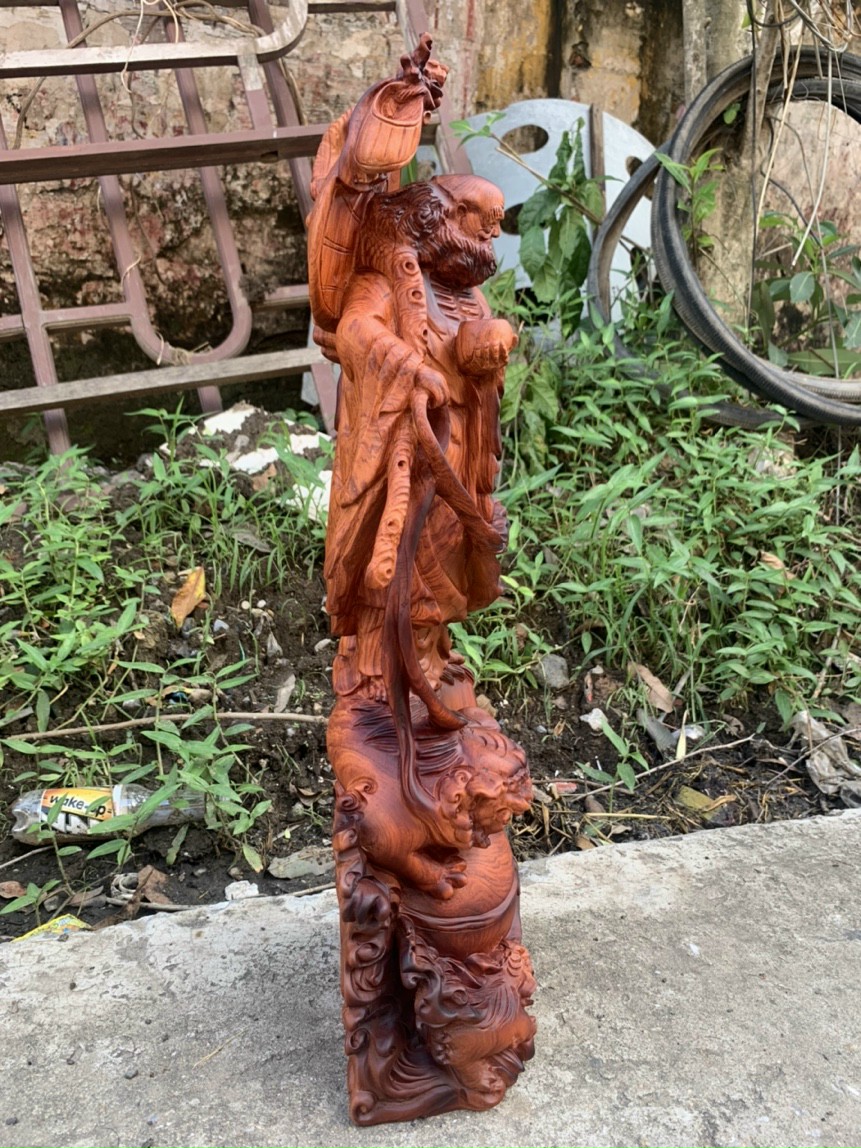 Đạt ma sư tổ cưỡi nghê cao 40 50 60 chất liệu gỗ hương đá nam phi