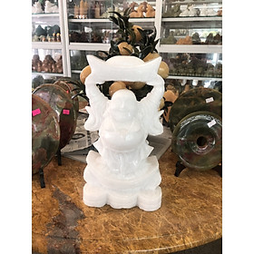 ✨Tượng Phật Di Lặc đứng đỡ thỏi ngân lượng đá trắng - Cao 30 cm