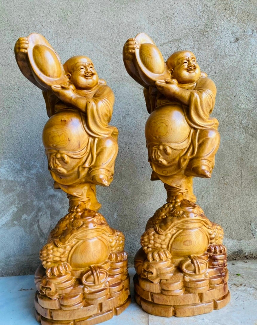 Tượng phật di lặc chúc phúc cao 40 50cm gỗ bách xanh cực đẹp
