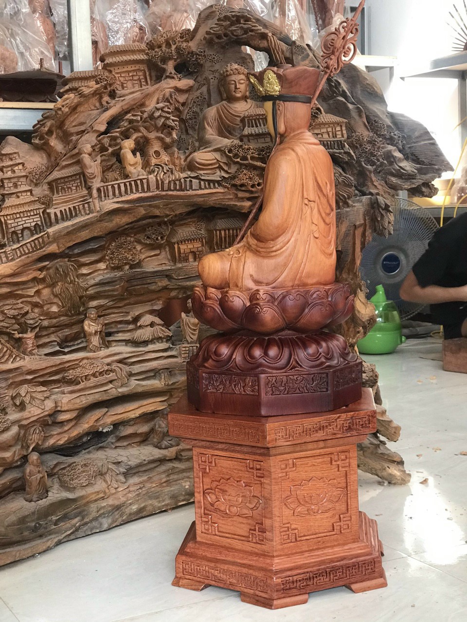 Tác phẩm Địa Tạng Vương Bồ Tát | Gỗ dổi liền khối Kt 50/50/d16 #shorts #đồgỗ