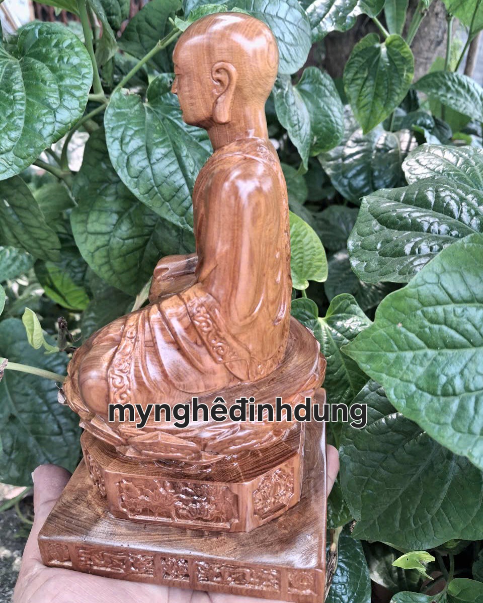 ✨Tượng phật hoàng trần nhân tông bằng gỗ bách xanh thơm nức cao 20x11cm