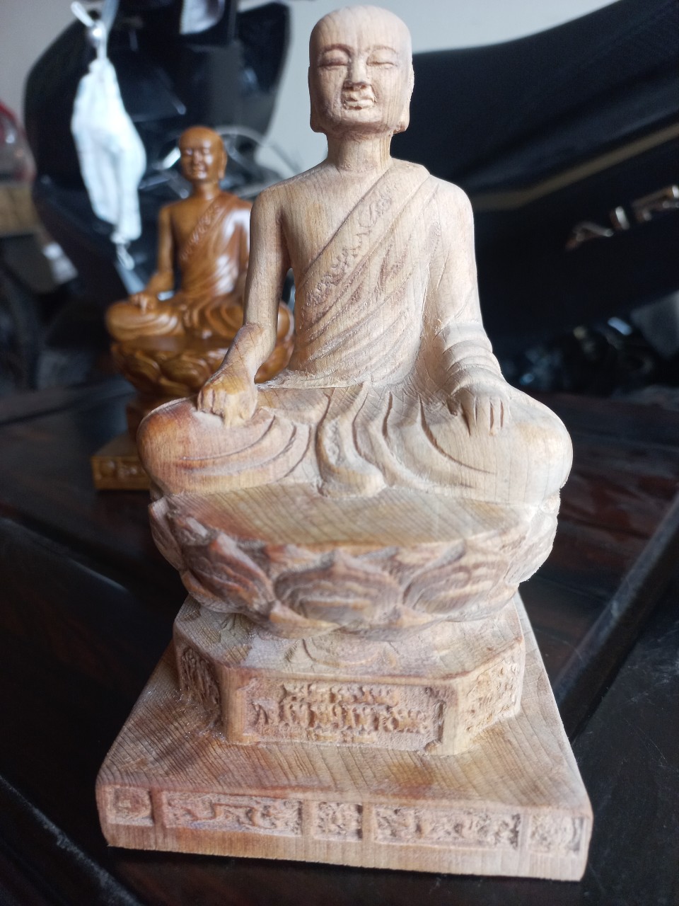 ✨Tượng phật hoàng trần nhân tông bằng gỗ ngọc am kt cao 15×9cm