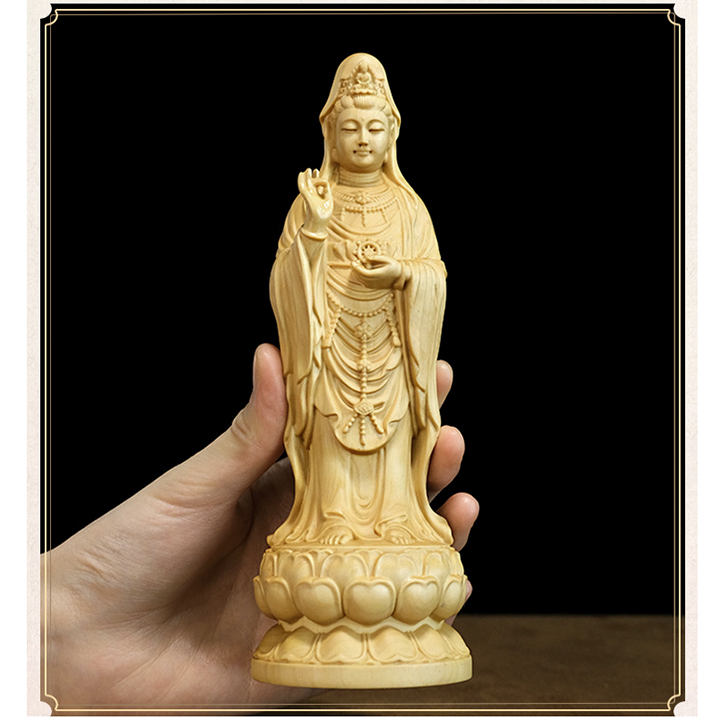 ✨Tượng Phật Quan Âm Như Ý đứng bằng gỗ Hoàng Dương MSPC210 (cao 21 cm)