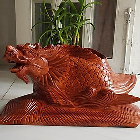 Tượng Phong Thủy Cá Chép Hóa Rồng Gỗ liền khối Dài 50cm x Cao 25cm x ngang 22cm Biểu tượng sự may mắn, thịnh vượng để phòng khách đem lại sự thành công sự nghiệp, tài lộc ạ