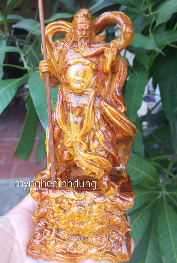 Tượng Quan Công Đứng Múa Gỗ Mỹ Nghệ Size Vừa Cao 40cm đk 24cm Sâu 17cm tư thế sẵn sàng chiến thắng Anh Chị trưng trên bàn phòng khách nhà , công ty ạ