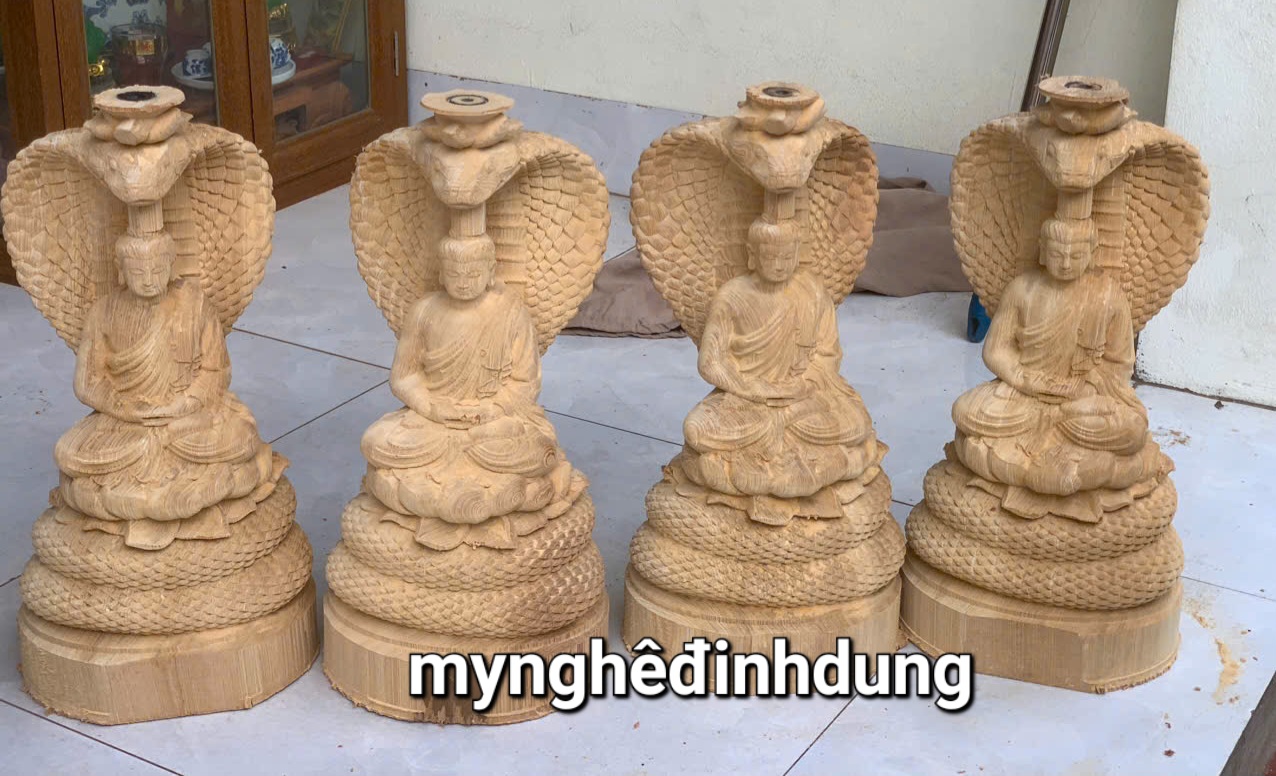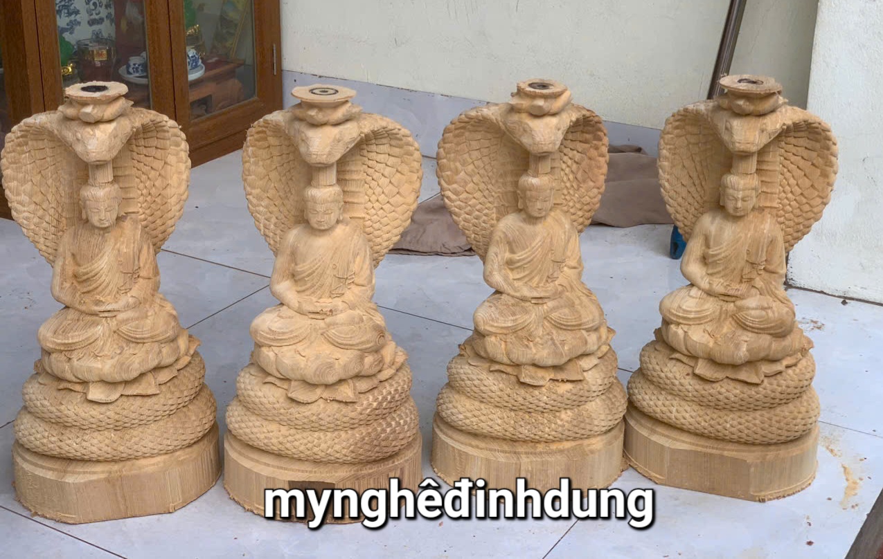 ✨Tượng thần rắn bảo vệ Đức Phật bằng gỗ ngọc am thơm nức kt cao 40x19.5x16cm
