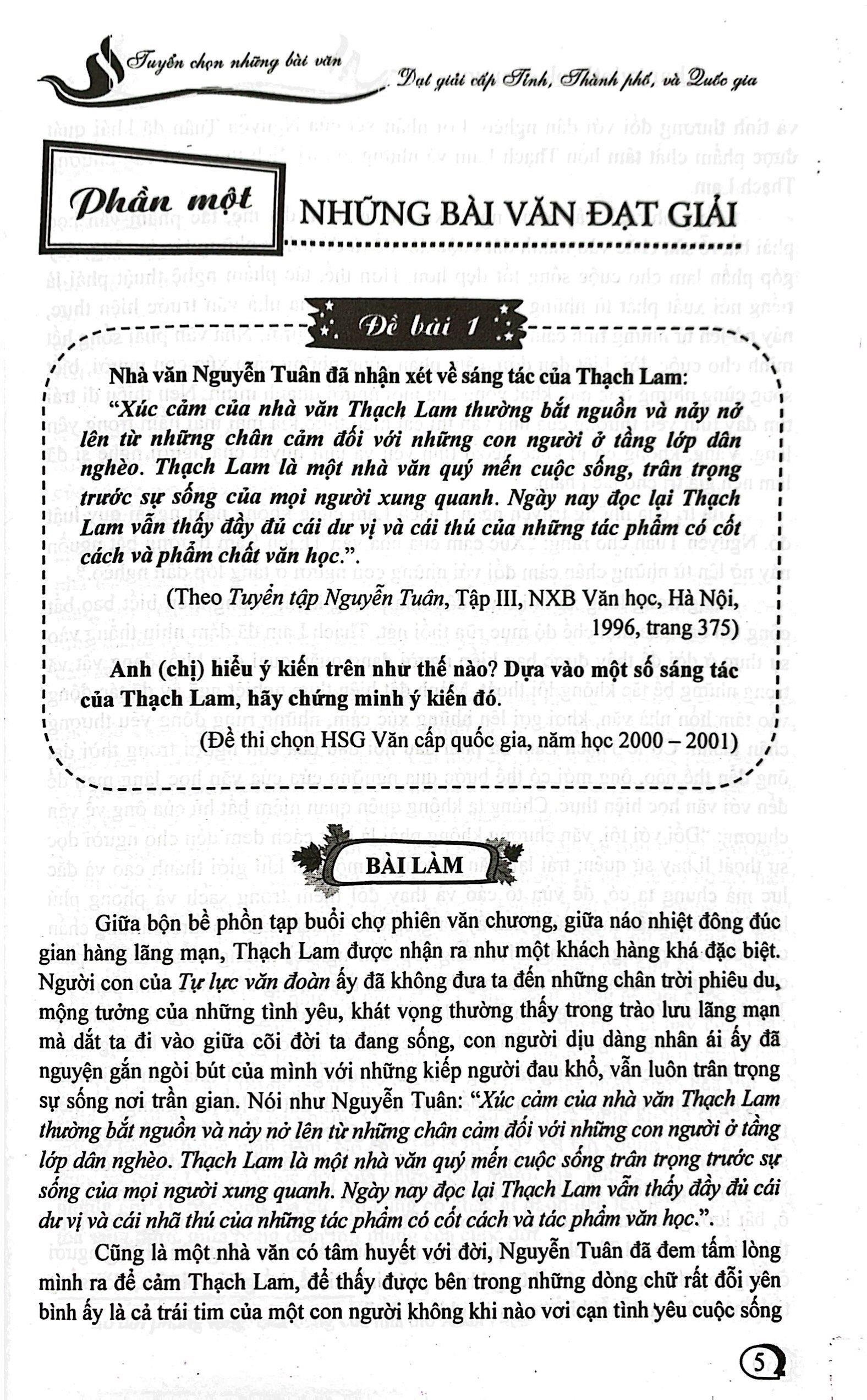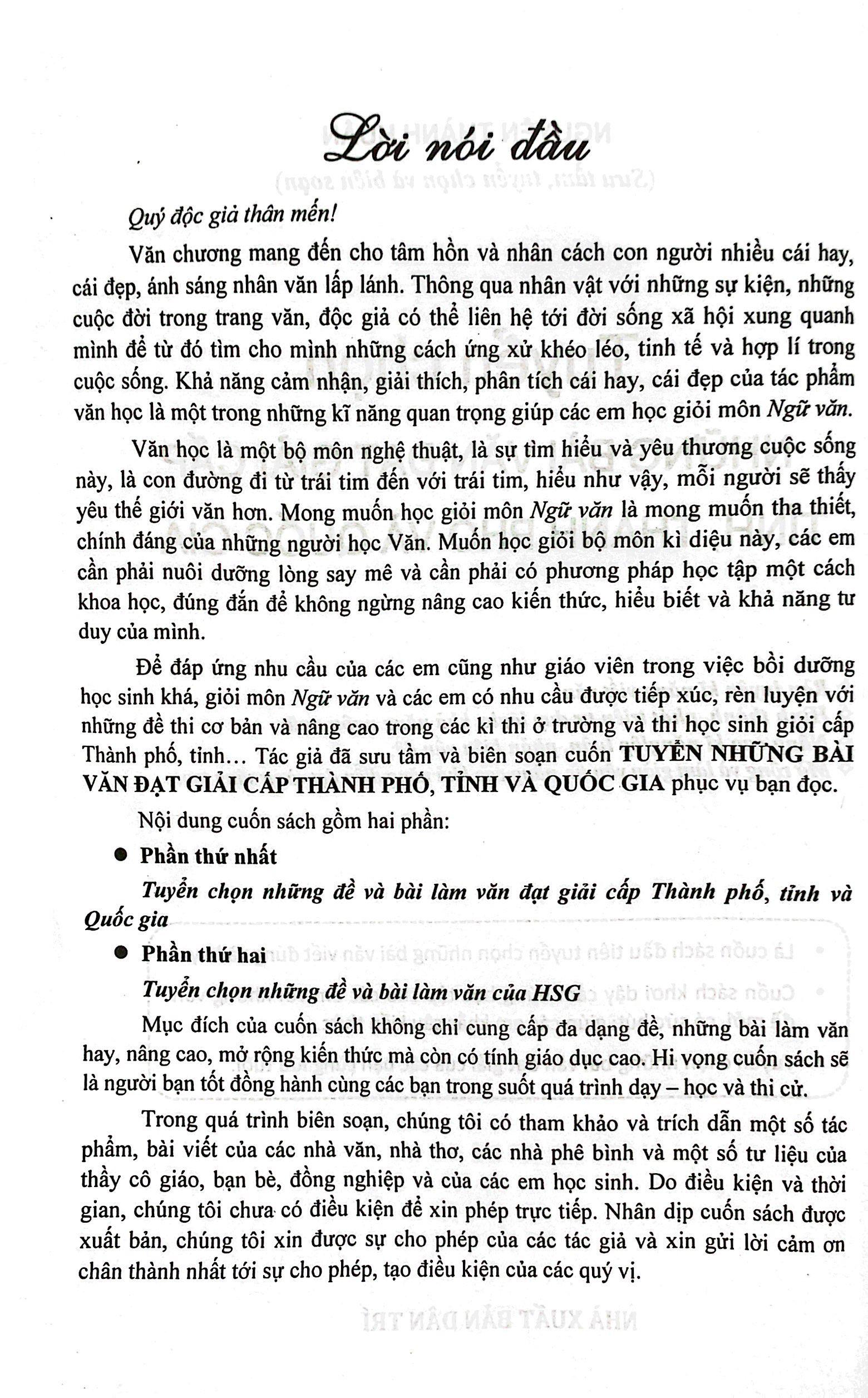 Tuyển chọn những đề và bài làm văn đạt giải cấp thành phố, tỉnh và quốc gia