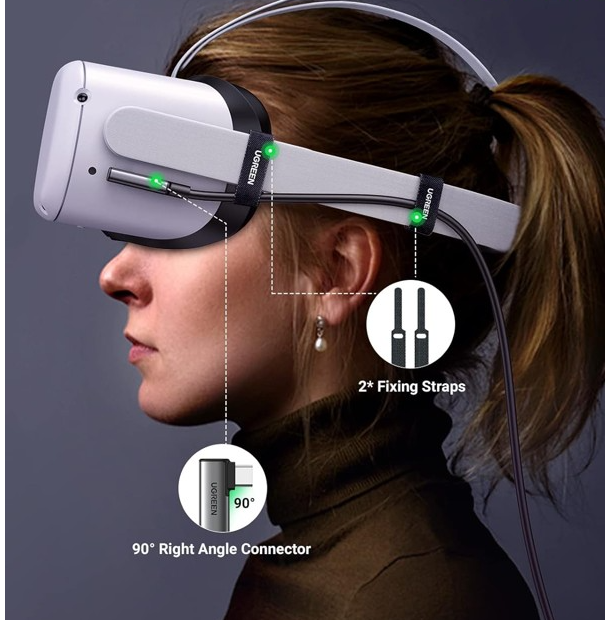 Cáp liên kết VR Ugreen 90629 USB C tương thích hoàn hảo với Oculus/Meta Quest 2/1, kết nối tai nghe VR với PC chơi game của bạn, cho phép bạn truy cập vào nhiều lựa chọn trò chơi Oculus Rift và ngày càng phát triển. Trò chơi Steam VR, mang đến cho bạn trải nghiệm chơi game VR thú vị.