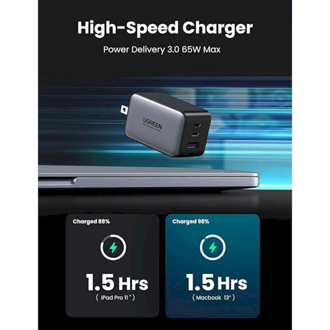 Củ Sạc Nhanh GaN 65W 3 Cổng UGREEN CD244 - 65W 2 cổng USB-C 1 USB-A - Nhỏ gọn nhẹ. #shorts