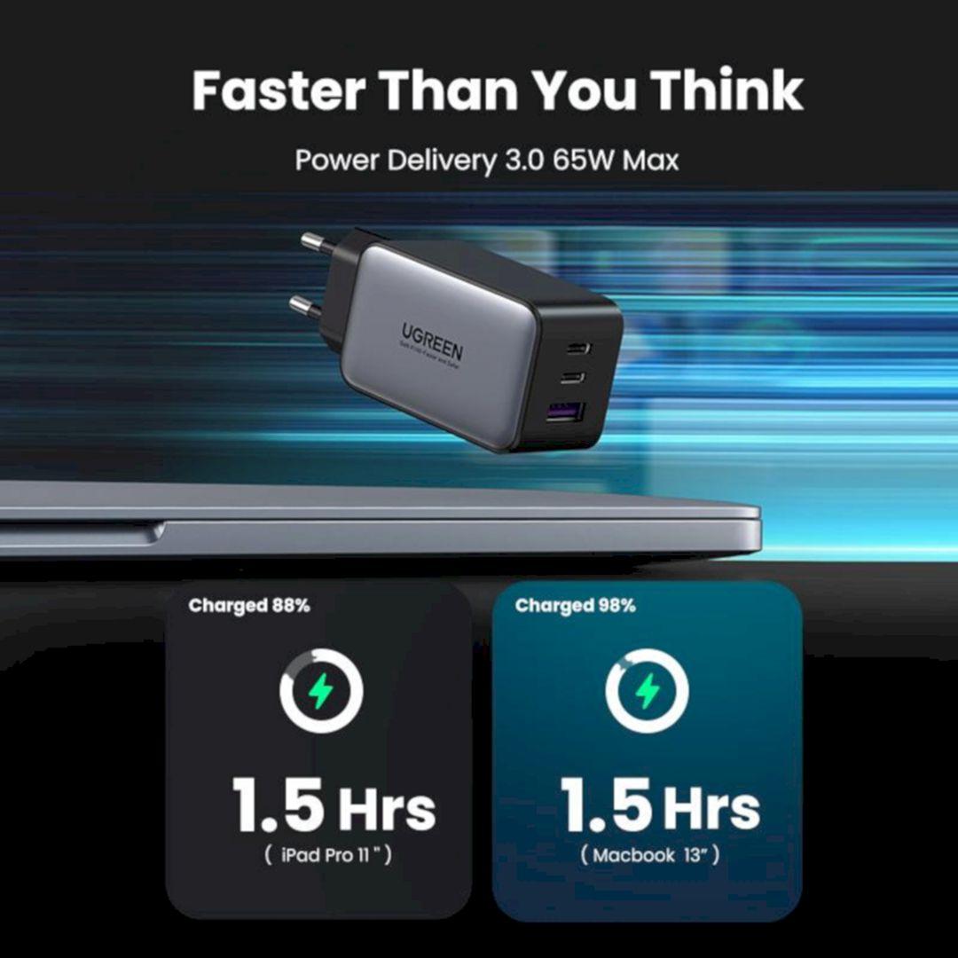 Củ Sạc Nhanh GaN 65W 3 Cổng UGREEN CD244 - 65W 2 cổng USB-C 1 USB-A - Nhỏ gọn nhẹ. #shorts