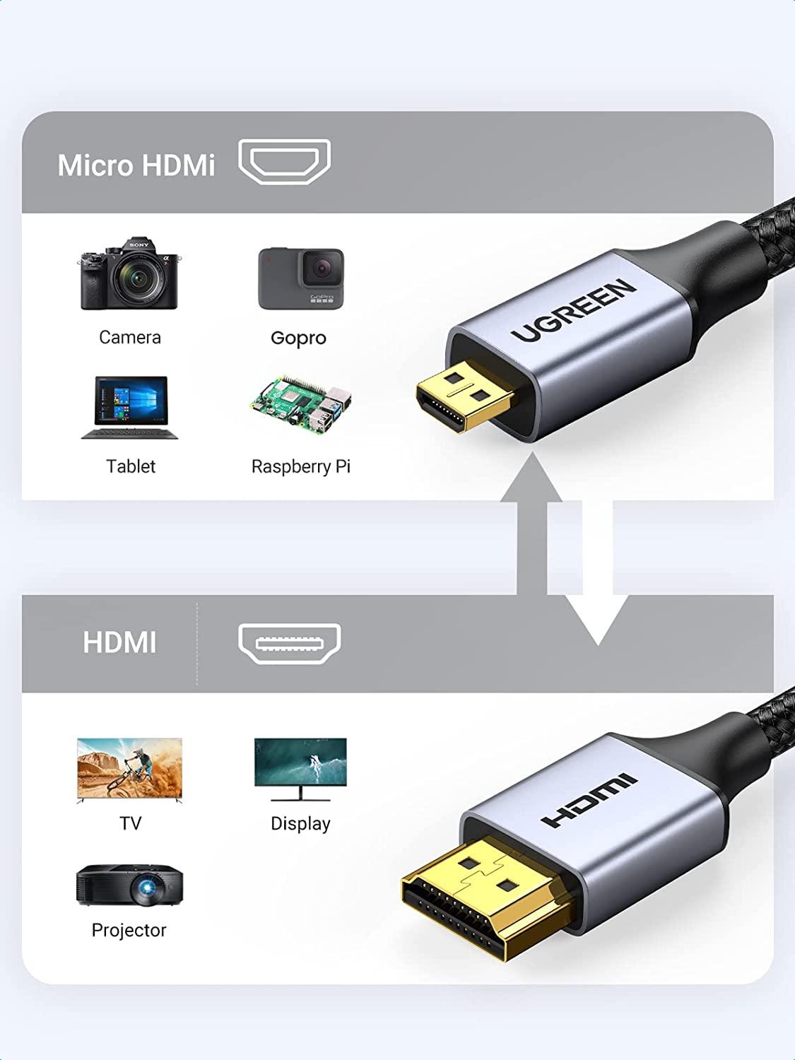 ✨Ugreen UG10550HD109TK 1M 4k 60hz Cáp chuyển Micro HDMI sang HDMI đầu kim loại dài 1M - HÀNG CHÍNH HÃNG