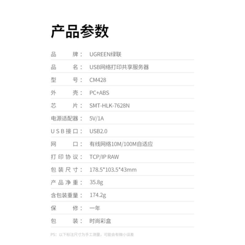 ✨Ugreen UG10941CM428TK Print Server rj45 chia sẻ máy in giao thức RAW cổng usb cho mạng nội bộ kèm dây nguồn micro - HÀNG CHÍNH HÃNG