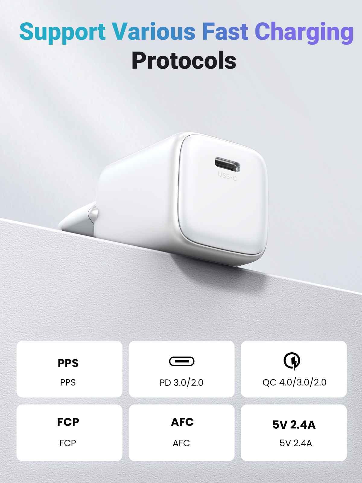 Tương thích với: PD2.0/QC3.0/QC2.0/PPS/APPLE 5V2.4A/BC1.2