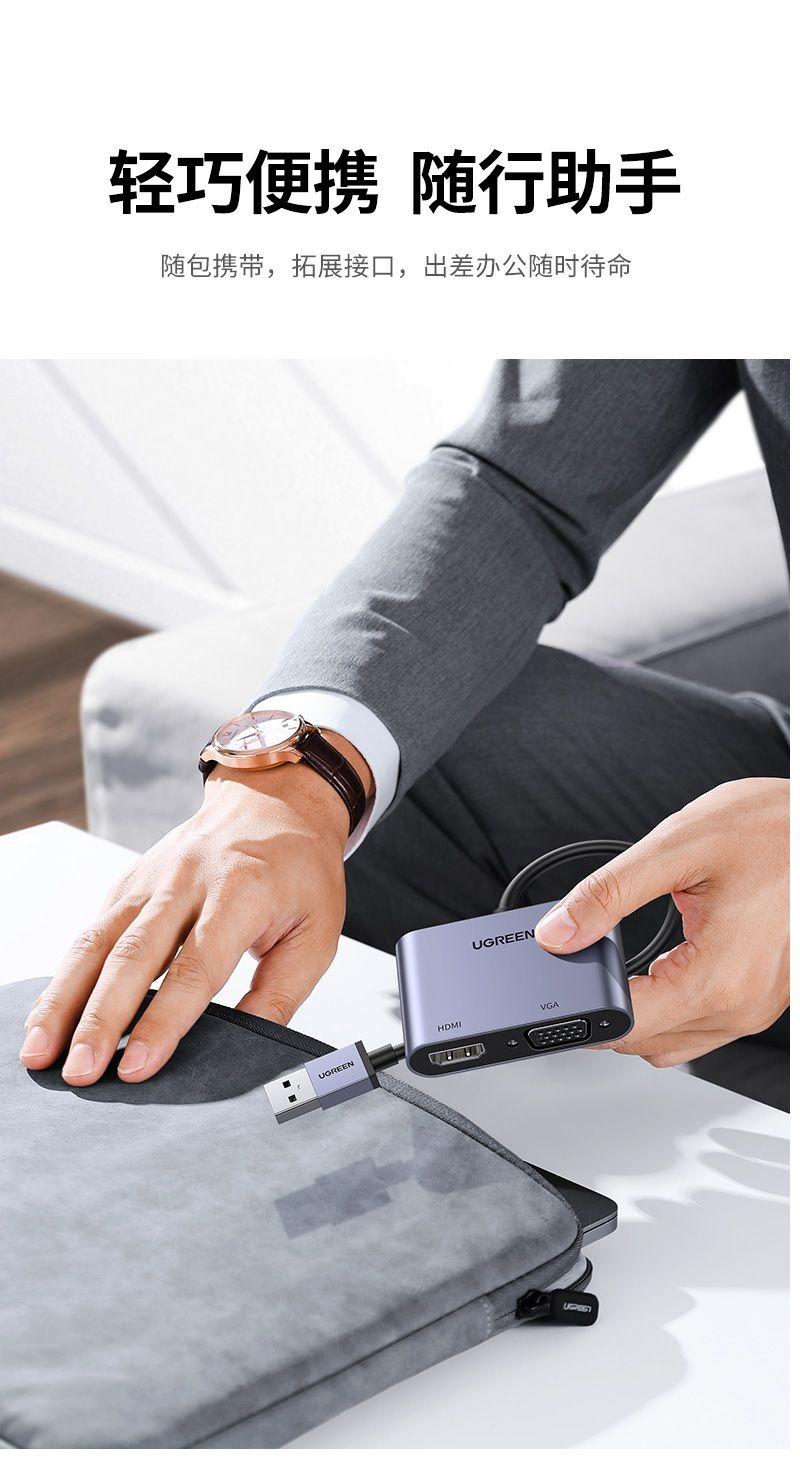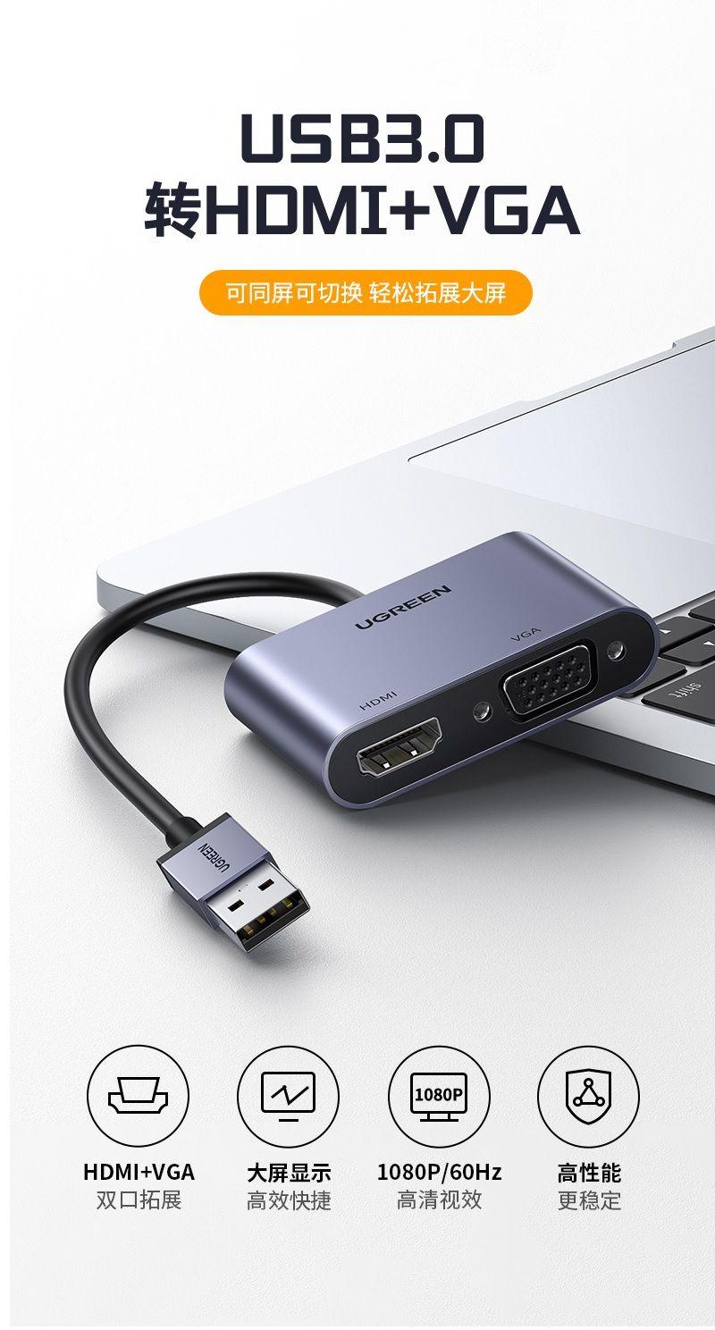 ✨Ugreen UG20518CM449TK 15CM Cáp chuyển đổi USB 3.0 sang HDMI + VGA 1080P/60Hz vỏ nhôm - HÀNG CHÍNH HÃNG