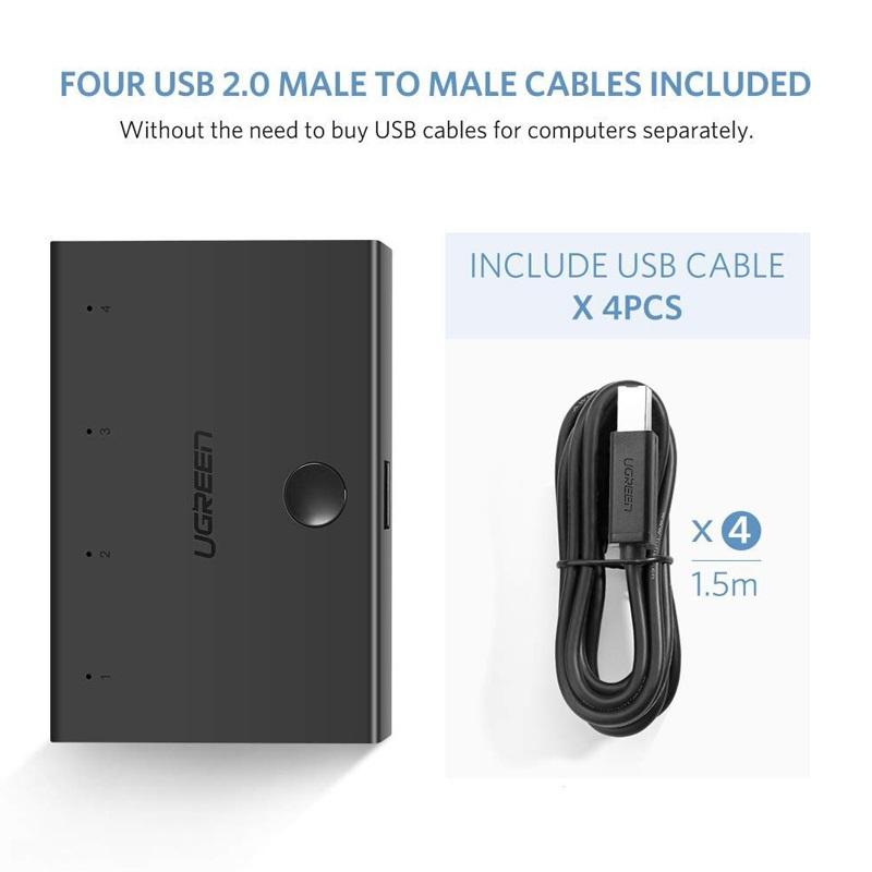 Mua tại TiktokUgreen 30346 4x1 usb 2.0 sharing switch 4 in 1 out black 30346